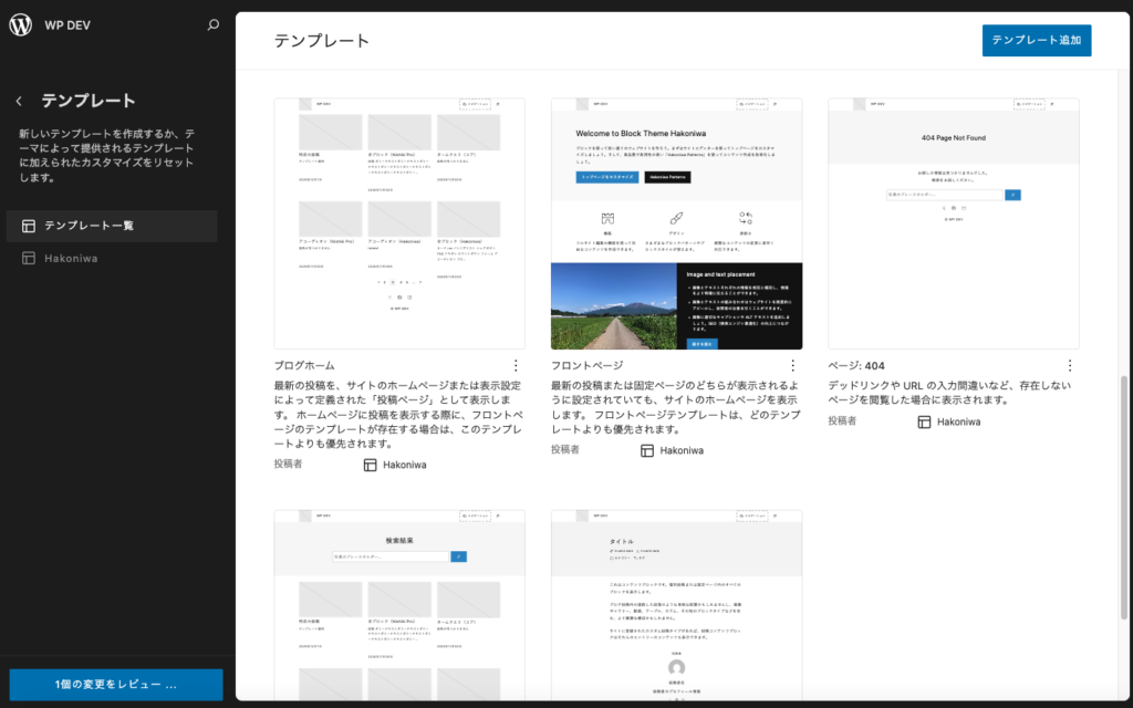 テンプレート一覧から固定したいページのテンプレートを選びましょう。今回は、例としてフロントページを選択します。